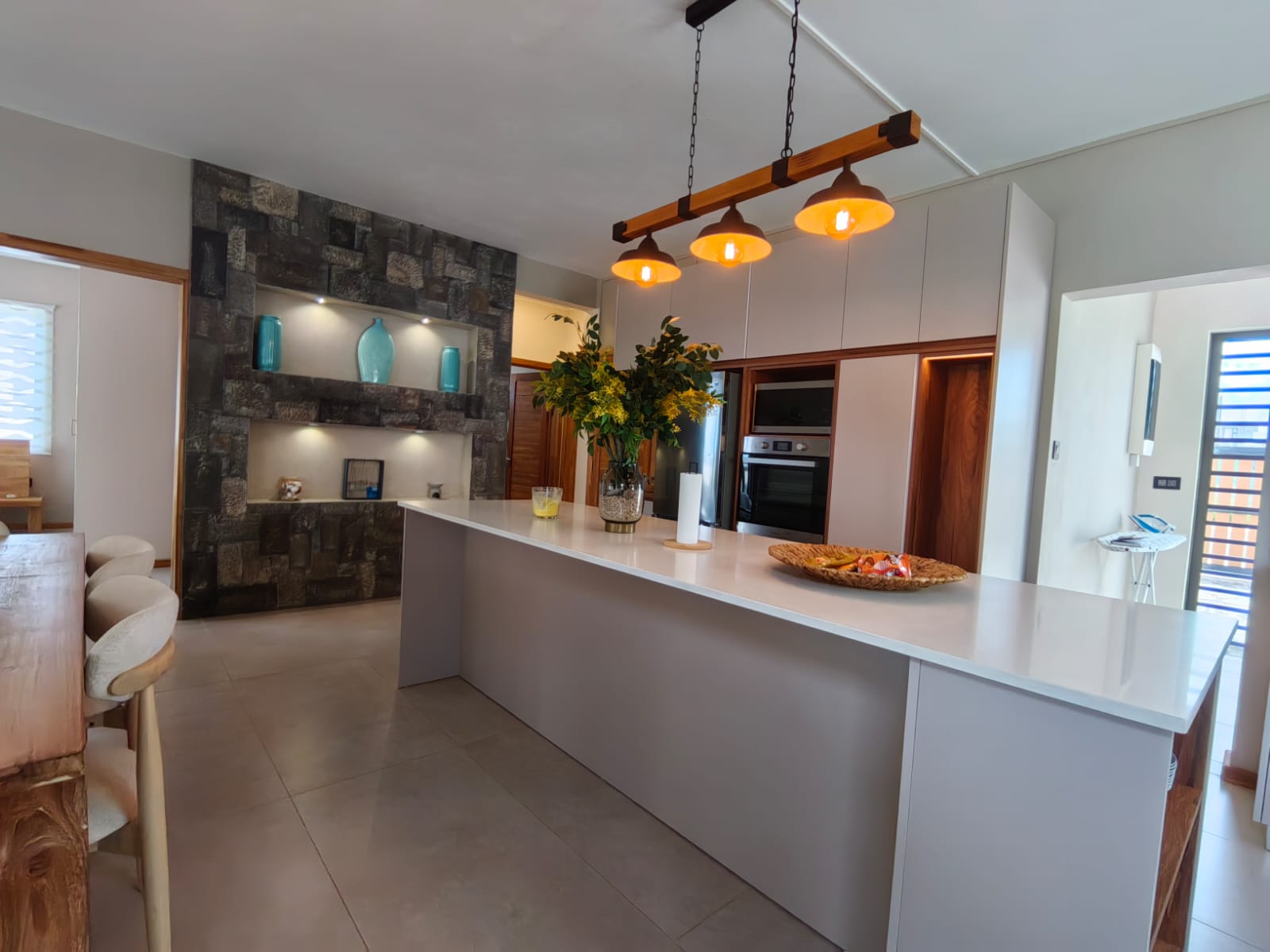 • Modern kitchen open to the living and dining area