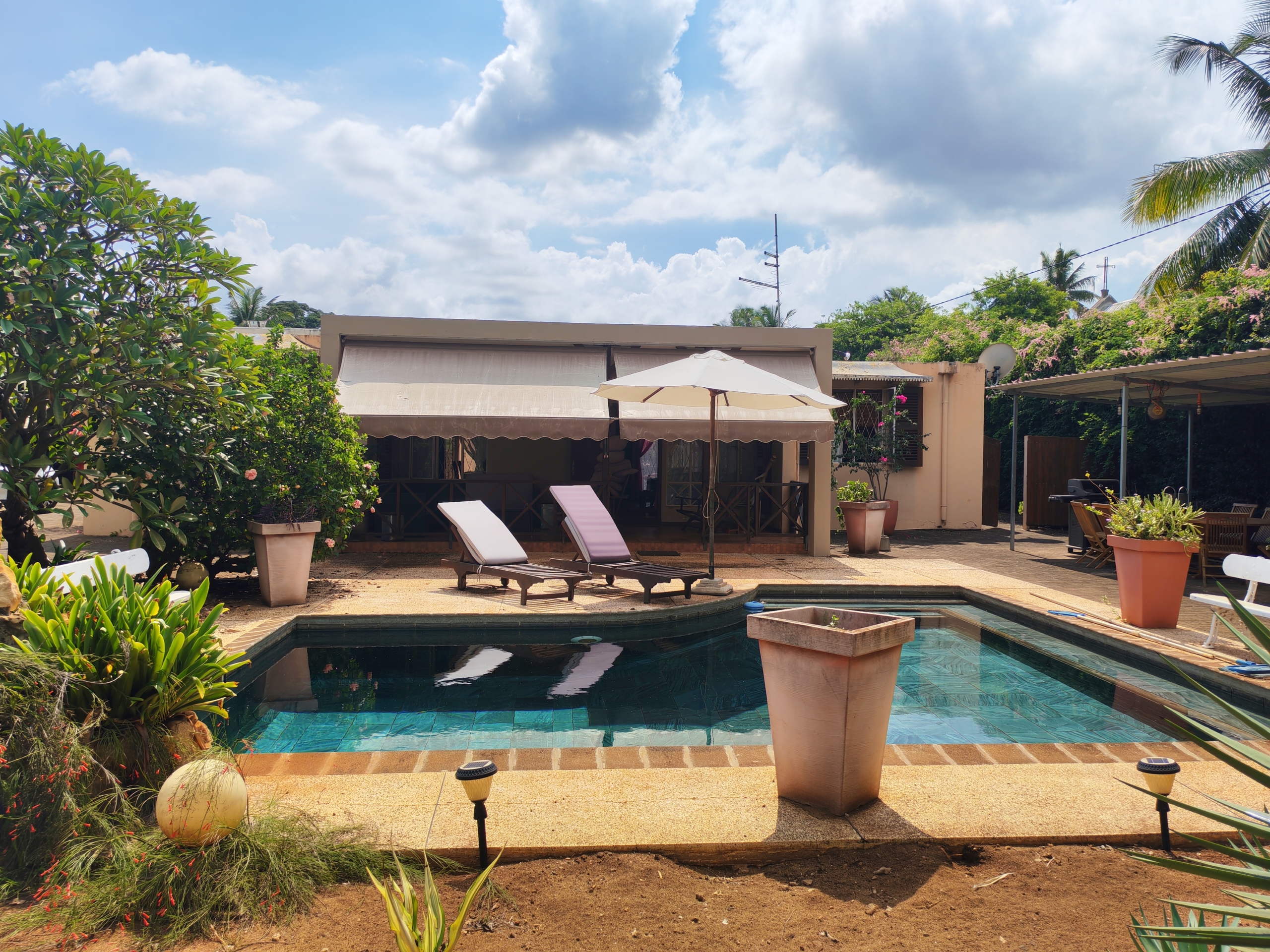 Located in Avenue des Jasmins, St Malo, this well-built house offers a peaceful and secure living environment in the northwest of the island. Not accessible to foreigners.